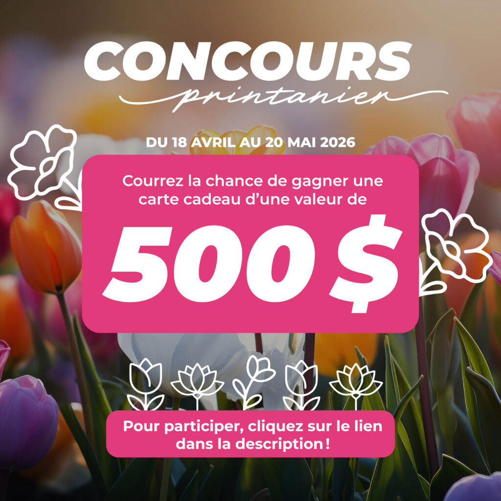 Participez à notre concours printanier et courez la chance de gagner une carte cadeau d’une valeur de 500$ !